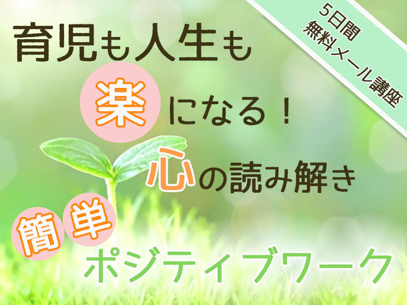 育児も人生も、あなたの心の持ち方が変わります。 ネガティブをポジティブに変換していく簡単ワークを5日間の無料メール講座でチャレンジしてみましょう。 >>>今すぐ無料で登録する